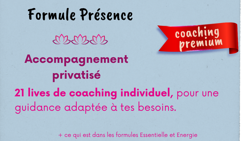 💎 Accompagnement durant 1 an concernant les coachings (de groupe : formule Energie / individuel : formule Présence)