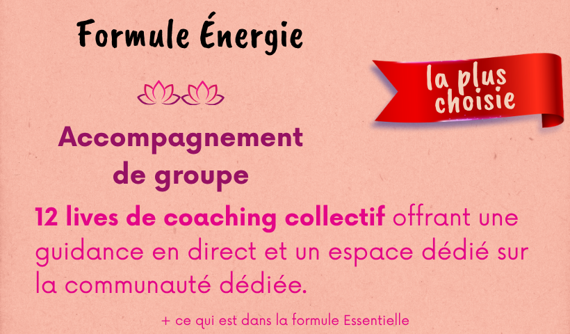 ➜ Cet accompagnement est ouvert durant 1 année autant pour les coachings individuels que les coachings de groupe de la formule Energie